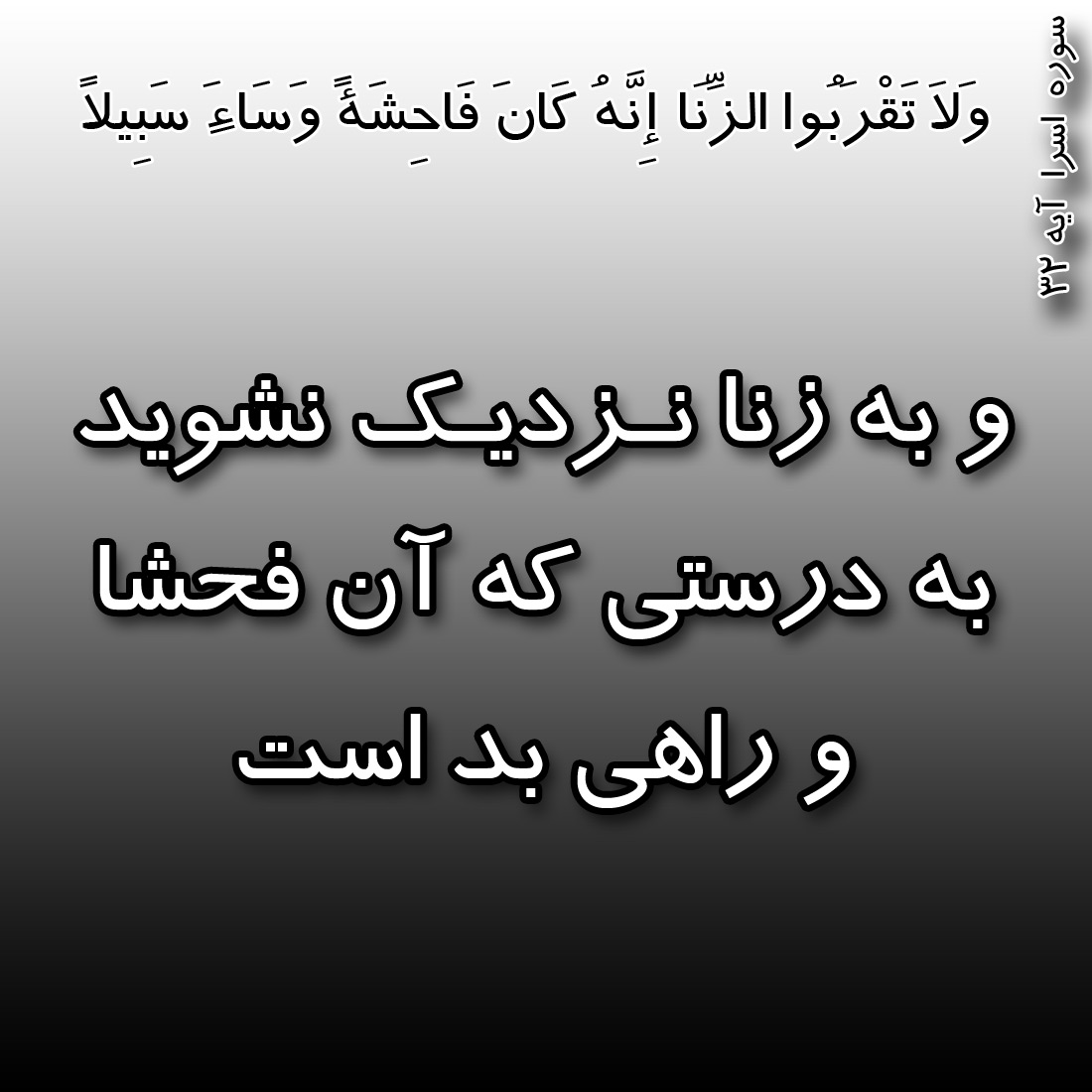 و به زنا نزديك مشويد به درستى كه آن فحشا و راهى بد است